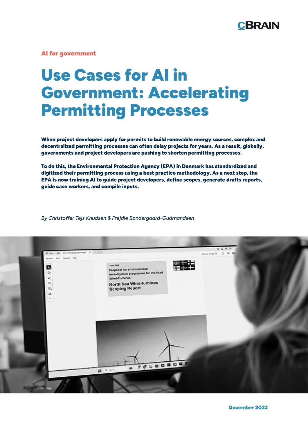 The Danish Environmental Protection Agency partners with cBrain to transform government environmental permitting through an AI-driven digital platform. This AI solution, powered by large language models and the secure F2 platform, accelerates permitting while ensuring compliance, environmental protection, and faster renewable energy transitions. With AI assisting in application review and decision-making, this system reduces workload and speeds up regulatory processes, all while upholding data privacy and security standards essential to government operations.
