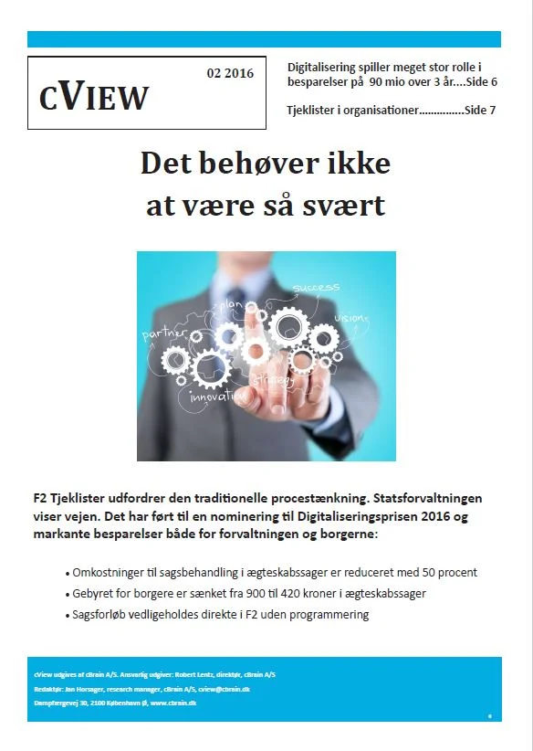 Sådan udfordrer F2 Tjeklister den traditionelle procestænkning. cBrains mini-magasin cView 02 2016 er på gaden.